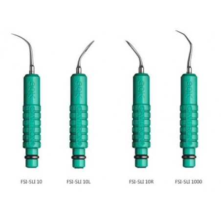 FSI SlimLINE-10R este un varf parodontal cu o singura curba (dreapta) folosit pentru a indeparta biofilmul, placa usoara deasupra gingiei si zonele subgingivale. Duza FSI Slimline este un instrument de inalta calitate care, cu designul sau patentat de livrare a apei, spray-ul focalizat si designul subtil, face scalarea mai usoara.